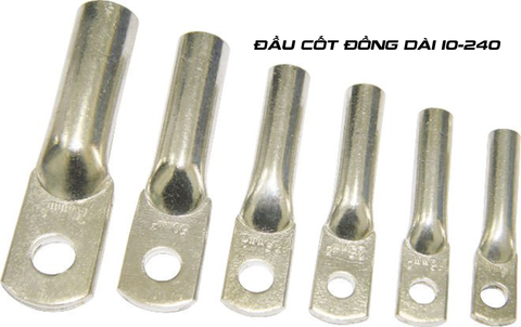- Đầu cốt (Lugs) và Ống nối (Splices): Là các chi tiết cơ bản nhất, dùng để kết nối trực tiếp lõi dẫn của cáp. Chúng được làm từ đồng hoặc nhôm (hoặc lưỡng kim loại đồng-nhôm) và được ép chặt vào lõi cáp bằng kìm ép thủy lực chuyên dụng.