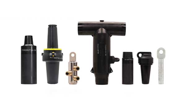 - Đầu cáp Plug-in (Separable Connectors): Gồm các loại đầu Elbow, T-Plug. Đây là loại đầu cáp được thiết kế đặc biệt để đấu nối vào các thiết bị có sứ bushing tiêu chuẩn Châu Âu (EN 50181). Toàn bộ bề mặt của chúng được bọc một lớp bán dẫn nối đất, giúp chúng hoàn toàn an toàn khi chạm vào (touch-safe). Loại phụ kiện này cho phép tạo ra các điểm đấu nối rất nhỏ gọn, an toàn và linh hoạt trong các tủ GIS và máy biến áp compact.